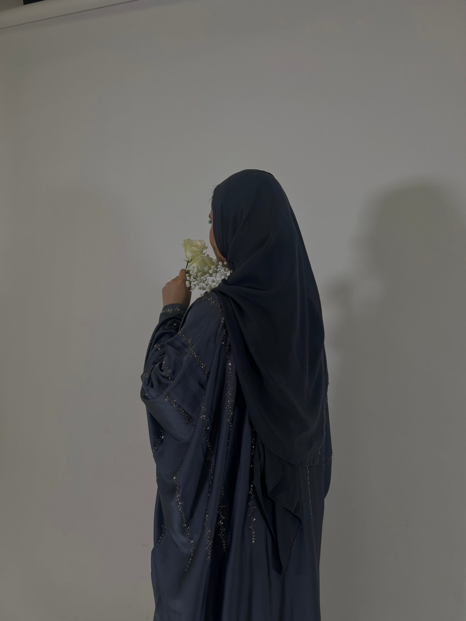 Our Open Embellished Butterfly Abaya is made from gorgeous satin/silk material with detailed embroidery at the front and back of the abaya.